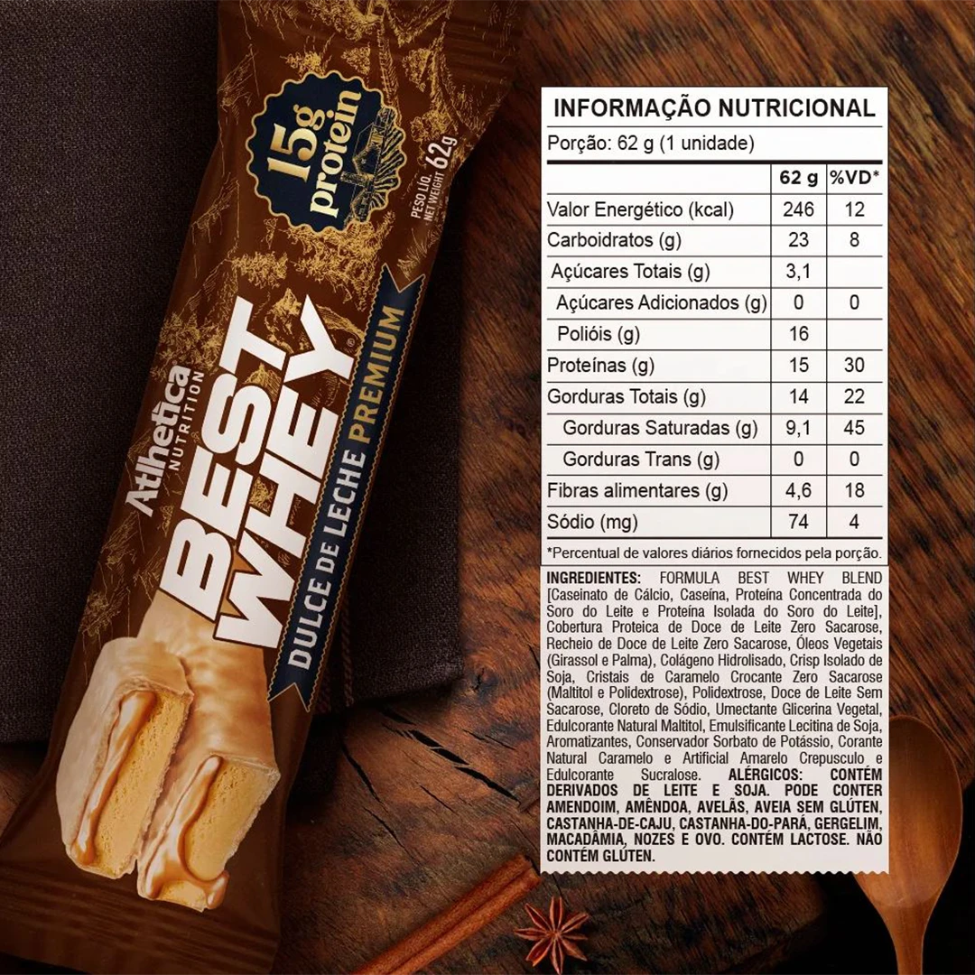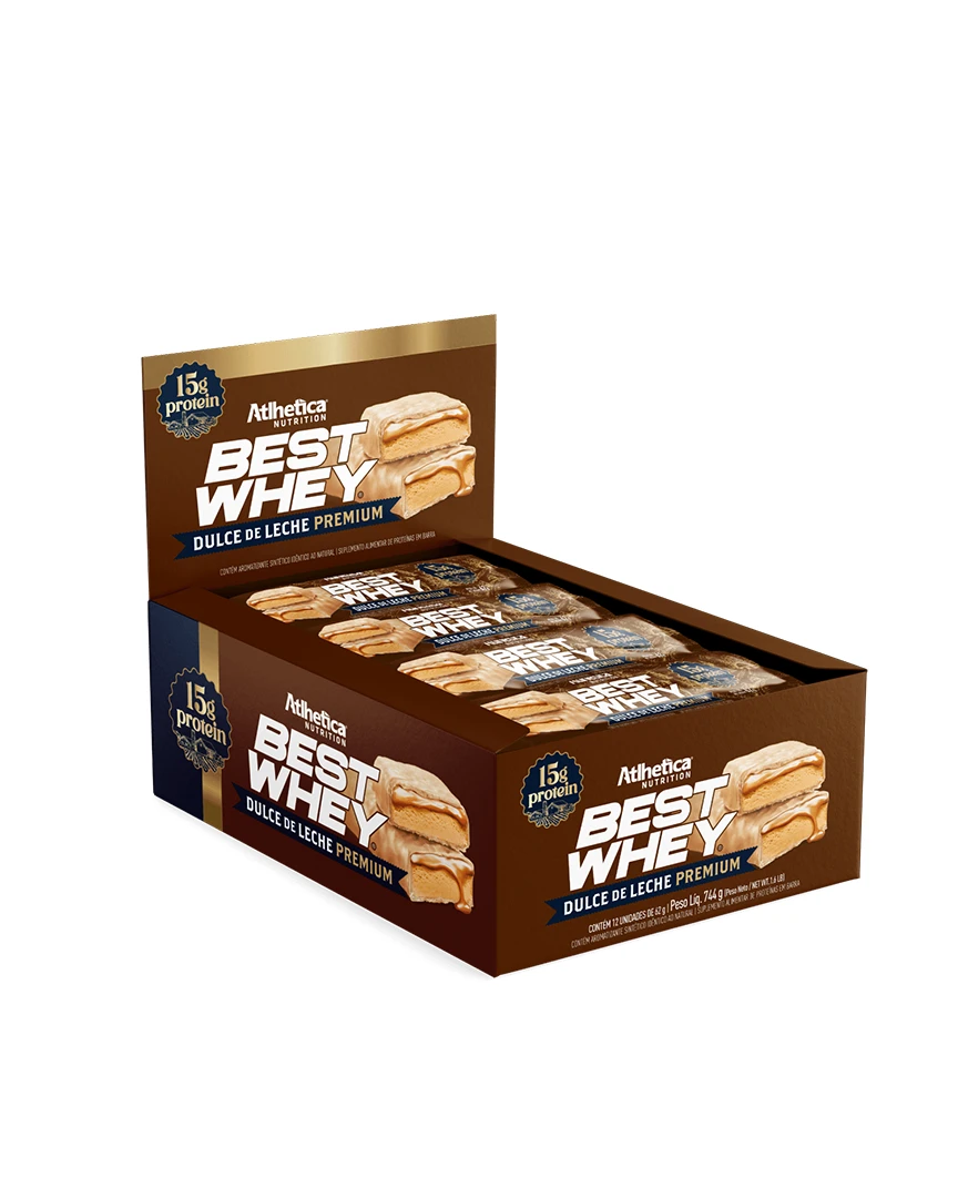 Las Barritas Best Whey 15 g de Atlhetica Nutrition son una opción de snack proteico potente, con 15 g de proteína por unidad, pensadas para quienes tienen mayores requerimientos o buscan una colación más completa.