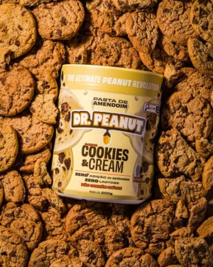 600g de mantequilla de maní sabor Cookies and Cream con nata de chocolate blanco y galleta, de textura crujiente. Producto brasileño premium. Textura cremosa y crujiente a la vez. Consistencia variable según la temperatura ambiente.