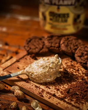 Con nata sabor a chocolate blanco y trozos de galleta crujiente, esta mantequilla de maní es perfecta para quienes buscan un equilibrio entre salud, textura y un toque de indulgencia. Su consistencia puede variar según la temperatura ambiente, manteniéndose siempre deliciosa y funcional.