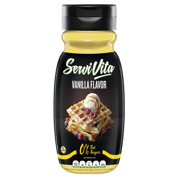 Aroma irresistible y textura cremosa. La salsa de vainilla Servivita Zero realza el sabor de tus waffles, panqueques o café proteico.